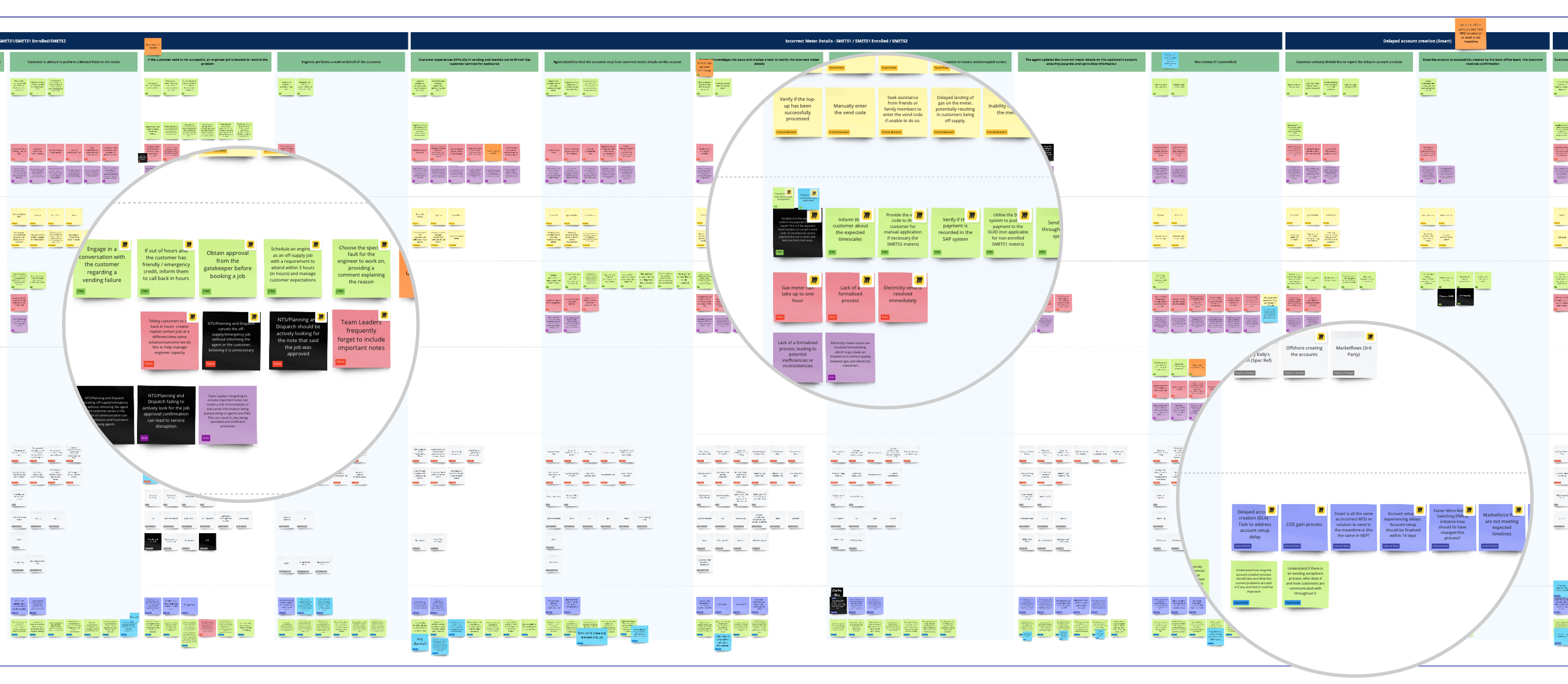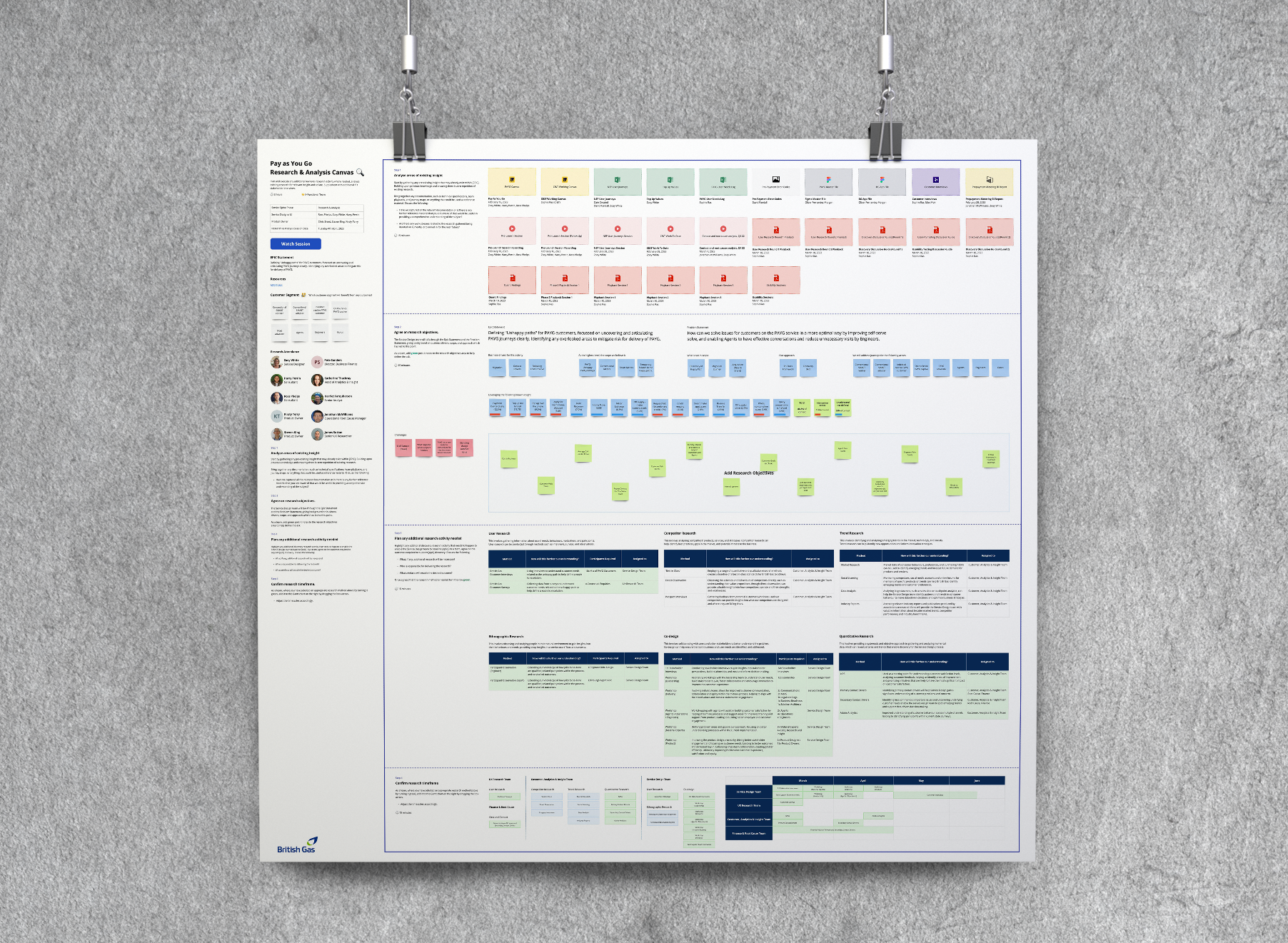 For the first time, we integrated the five research capabilities at British Gas: root cause analysis, UX research, data analytics, trend analysis, and finance. Key stakeholders from these domains collaborated, sharing useful insights and documents, user journey maps from the legacy platforms, Figma designs, and business intelligence reports on the broader category of metering.