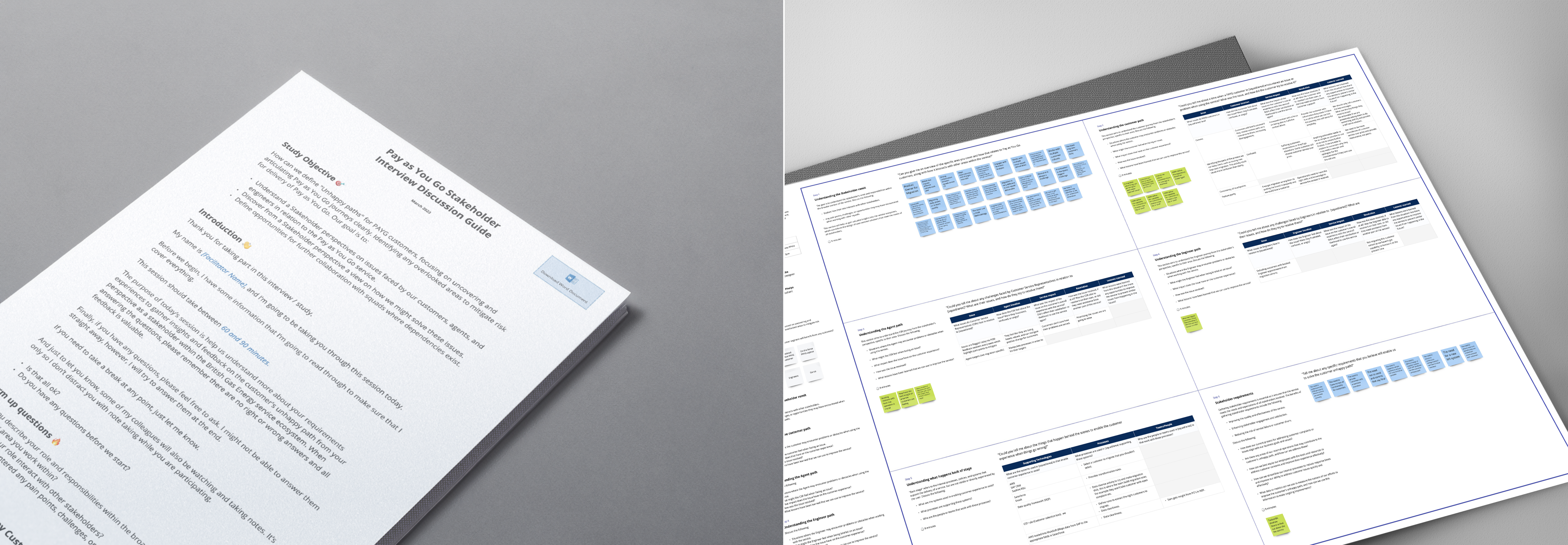 The raw insights from these interviews were meticulously synthesised into our final service design artefacts. This holistic approach, which included analysing the journeys of customers, agents, and engineers, enabled us to identify opportunities for service improvement and design solutions that align with business objectives and address the needs of those we serve.