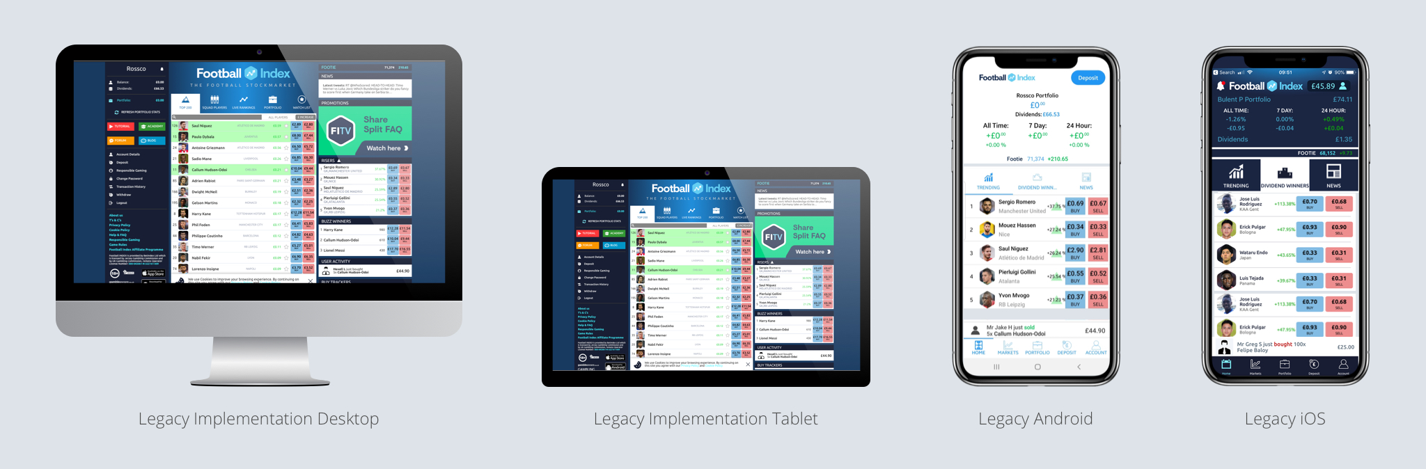 The initial task was to transform a static, legacy infrastructure into a dynamic, responsive variant with a significantly enhanced user interface, primed for the integration of the exchange feature. This responsive and native experience would, in due course, supersede both app versions, providing a unified Football INDEX experience by traders.