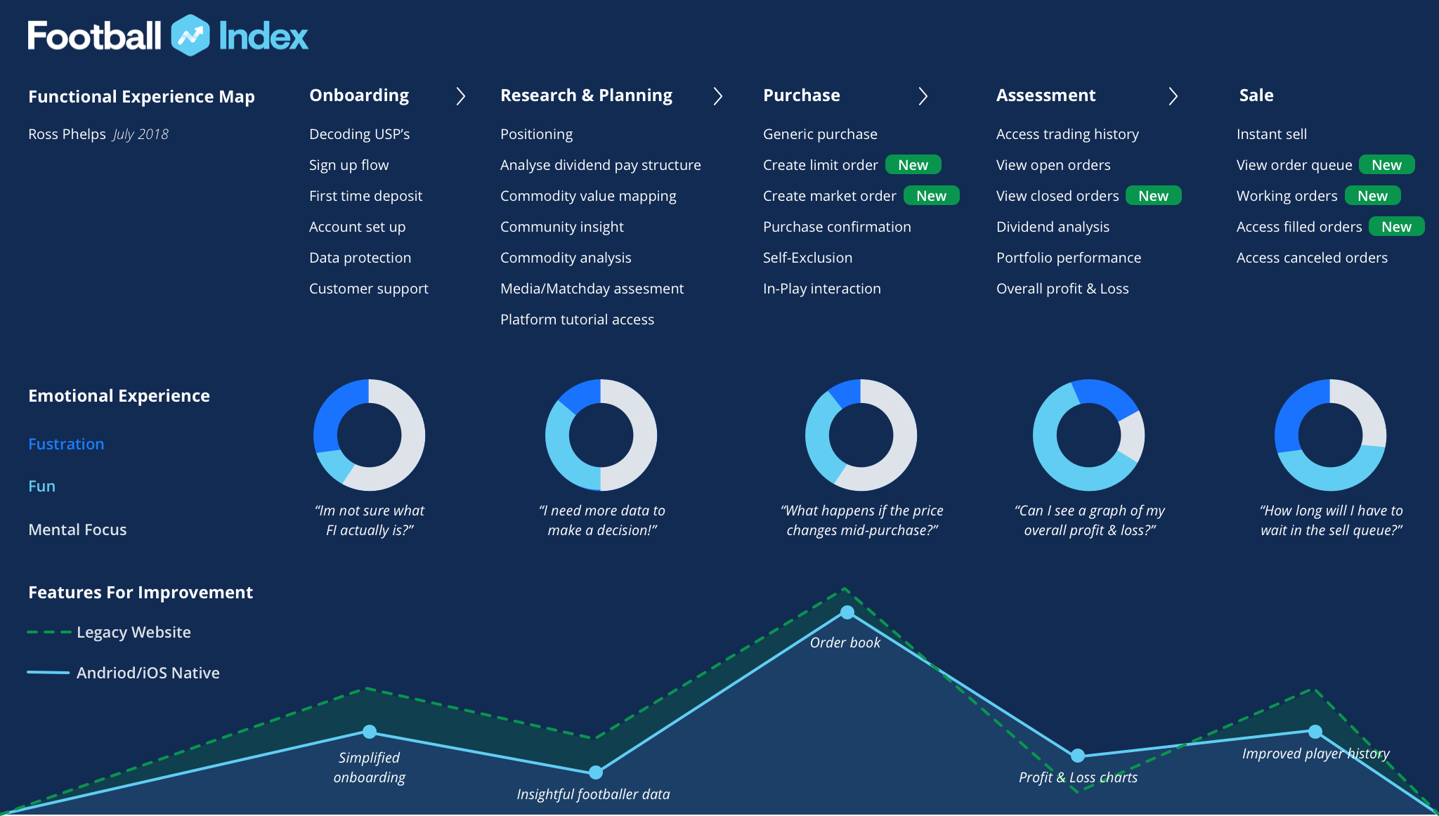 I began my consultancy with Football INDEX in May 2018. My primary responsibility was to lead Design Operations and establish a product-focused, user-centric design methodology within an agile development framework, aiming for quantifiable product enhancements.