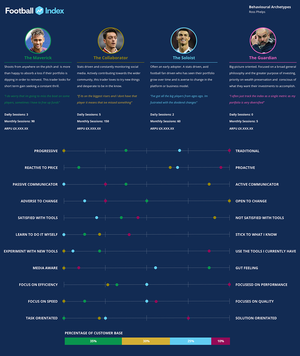 Football INDEX had a predefined persona of who they believed their Traders are, produced by an agency who were only looking for one type of user. I hypothesised there were many more in the system from a biased perspective I believed 30,000 active users would never fit into a single mindset.