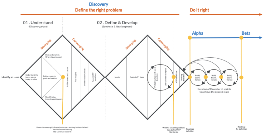 The UX process I initiated was meticulously structured using a human-centred design approach, leveraging the infamous double diamond framework. This framework facilitated thorough exploration and definition of the problem space before moving into solution development working with squads of engineers to deliver a vastly improved experience.