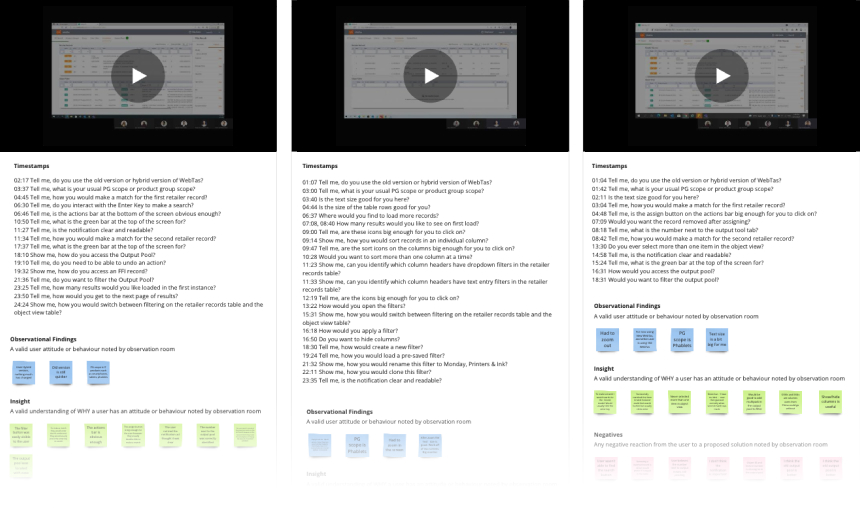 I led multiple user interviews, marking the first time WebTas users actively shared feedback with GfK. Initially, the team nominated mainly experienced, English-speaking users, but I advocated for including a broader user range to avoid this obvious operational bias. These interviews were crucial in understanding user habits, pain points, and their jobs to be done. My approach to analysis highlighted areas for improvement in the platform’s user, experience, and interface, shaping future plans for WebTas. The team prepared a semi-structured interview guide, using a “show me, tell me” method to gain deeper insights and guide the development of a much more user-friendly platform.