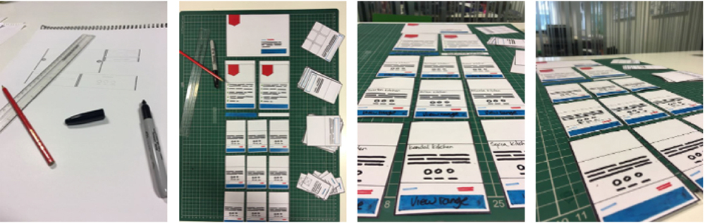 Following the proposition analysis and co-design sessions the team set about using all aggregated data to produce a series of sketches. The process was defined by creating components which would be used within the future responsive site framework. Once finalised, the first draft of components were then photocopied and turned into paper prototypes for layout mapping subject to serious scrutiny from peer review..