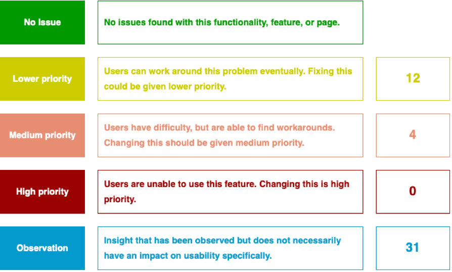 ollowing usability and proposition testing of the experience as a whole, the team sat and worked through a range of issues that had been highlighted. We were able to then break these down into specific categories.